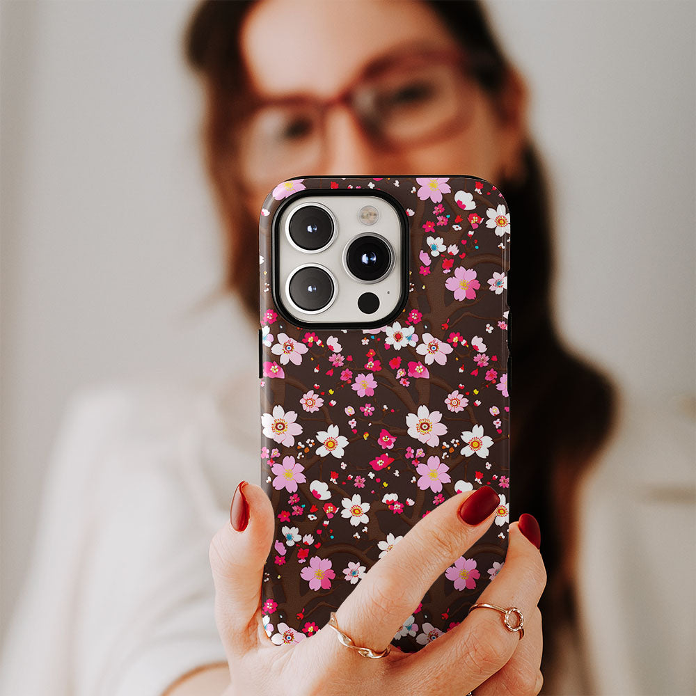 Double-Layer Semi-Handprinted Tough Matte Sakura iPhone Case