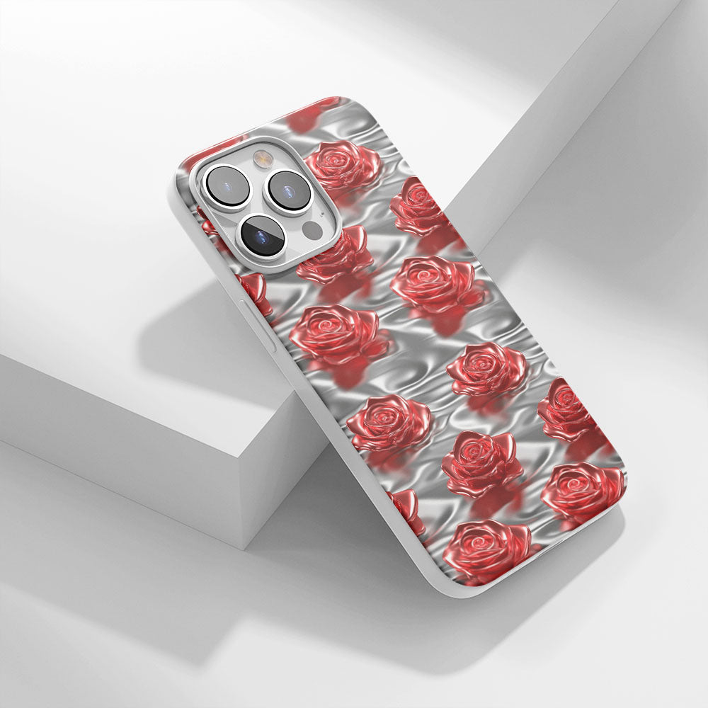 Latest 3rd-Generation Crystal Tough Glossy Red Rose iPhone Case (MagSafe-Compatible)